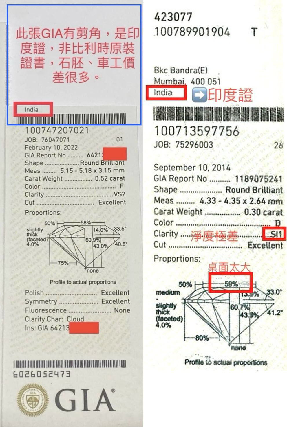 其2.「鑽石切磨地」-看證書第三.四聯,剪證與否!